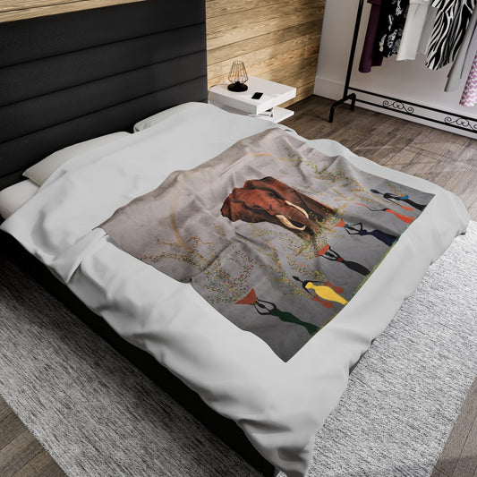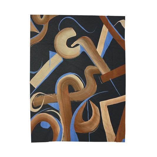 Velveteen Plush Blanket - Abstract Black, Brown, Blue Art - Cozy and Artistic Home Decor