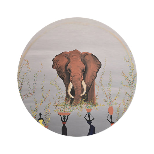 Black, Brown and Blue Round Rug